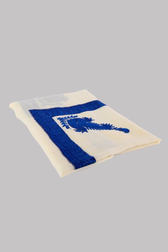 شال كشميري بشمينا نص ترما صوف 50% - ازرق - ابيض